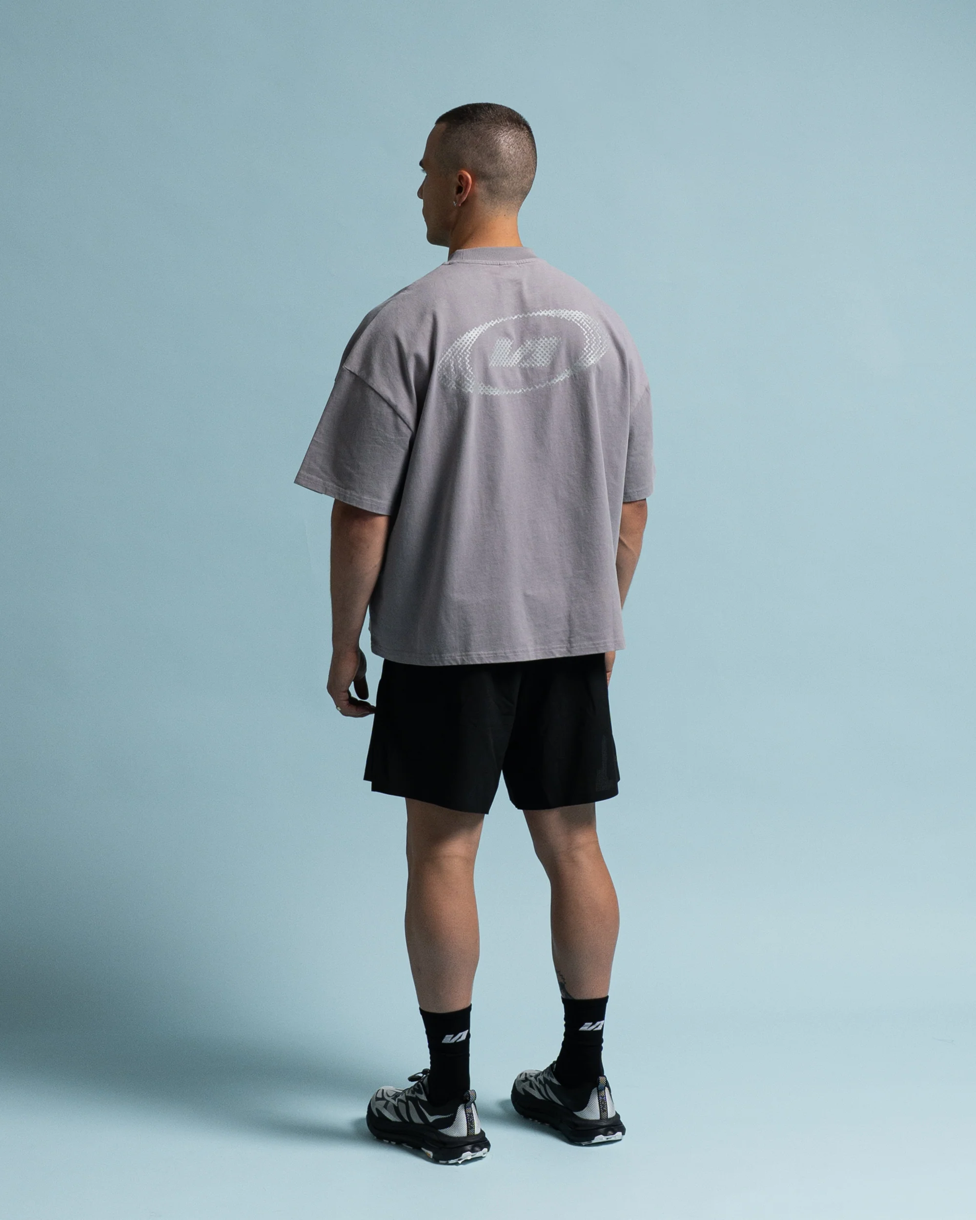 Cropped, boxy T-shirt crafted from soft, brushed cotton. Designed with a relaxed silhouette and finished with a subtle reflective logo, balancing everyday wear with a technical edge